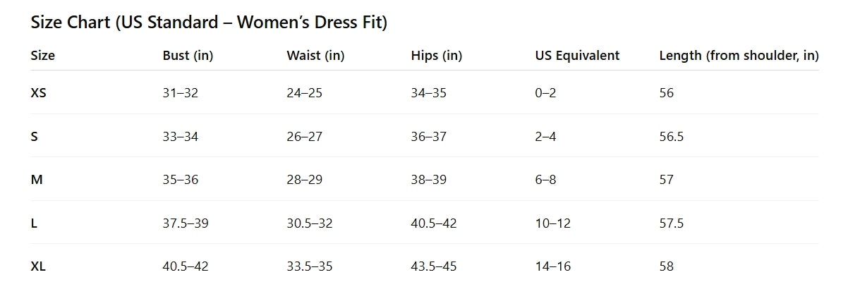 If between sizes, size up for a more relaxed fit around the bust and waist.